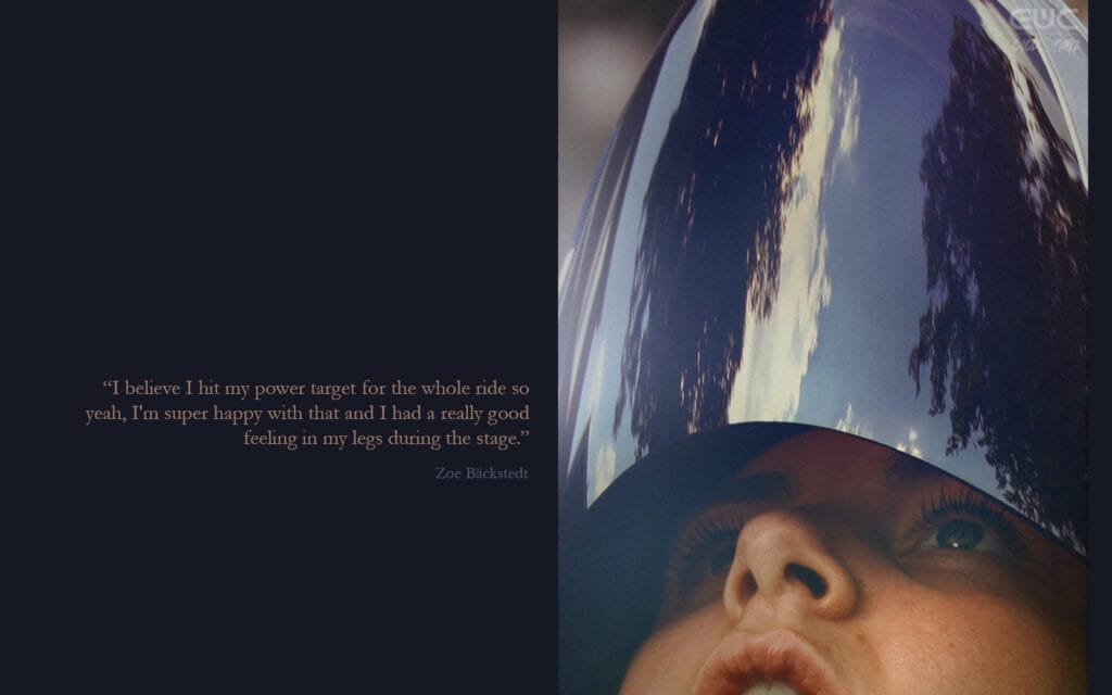 Zoe Bäckstedt stormed to victory over the 10.2 km course, stopping the clock at 12 minutes 34 seconds… an astonishing ride at an average speed of 48.7 km/h!