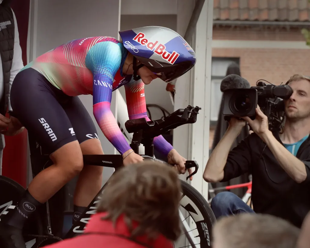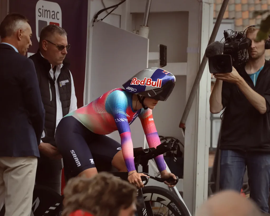 The field of competitors that day was impressively strong, with several contenders for the coveted yellow leader’s jersey. This time trial was one of the few opportunities to gain time on rivals, as the remaining five stages were almost entirely flat and likely to favor the sprinters. Just a few notable names among the participants: multiple world and Dutch time trial champion Ellen van Dijk, multiple Dutch time trial champion Riejanne Markus, two-time British time trial champion Anna Henderson, two-time road world champion and multiple Belgian time trial champion Lotte Kopecky. And last but not least, her own teammate Chloé Dygert, a two-time American time trial champion and former world time trial champion in 2023. Additionally, there were plenty of other strong time trialists present, including Zoe Bäckstedt herself.