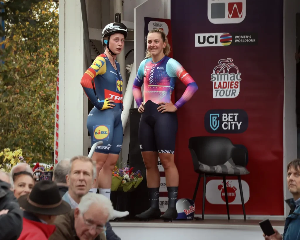 In the end, Bäckstedt finished third in the general classification of the 26th Simac Ladies Tour, behind Franziska Koch (dsm-firmenich PostNL), with Lotte Kopecky taking the overall victory. Remarkably, Bäckstedt achieved this without any teammates by her side. After the time trial, Chloé Dygert was forced to withdraw due to a broken nose from a collision with a shower door, and her teammates Soraya Paladin and Maike van der Duin couldn’t start the second stage due to illness. Her last remaining teammate, Alex Morrice, also had to abandon the race during that same stage.